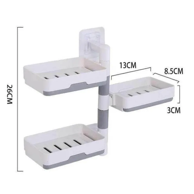 Der in Grau und Weiß erhältliche, wandmontierte, mehrschichtige, drehbare Seifenhalter umfasst eine Einheit, die die Funktionalität und den Stil Ihres Badezimmers verbessert.