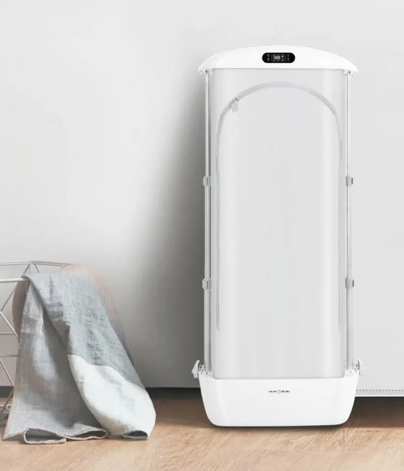 Entdecken Sie den Komfort des faltbaren elektrischen Dampftrockners, einer tragbaren Bügelmaschine, die Ihre Wäscheroutine vereinfacht. Verabschieden Sie sich von sperrigen Bügelbrettern und langwierigem Wäschetrocknen. Mit der effizienten Dampffunktion entfernen Sie mühelos Falten und Knicke aus verschiedenen Stoffen auf Knopfdruck. Hängen Sie Ihre Wäsche einfach auf, schalten Sie die Maschine ein und freuen Sie sich in wenigen Minuten über frische, knitterfreie Kleidung.