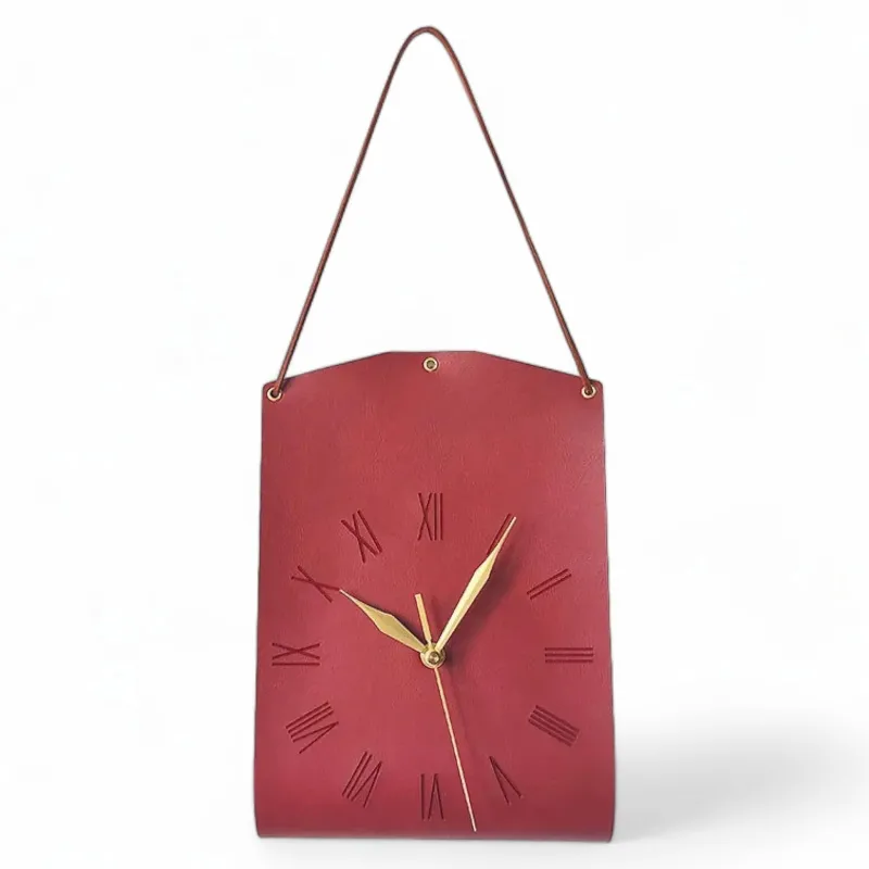 Entdecken Sie eine einzigartige Wanduhr, die auf kreative Weise an die Form einer Lederhandtasche erinnert und Ihrer Wohnkultur einen modischen Touch verleiht. Diese stilvolle Uhr definiert die traditionelle Zeitmessung neu und ist eine faszinierende Ergänzung für jeden Raum.