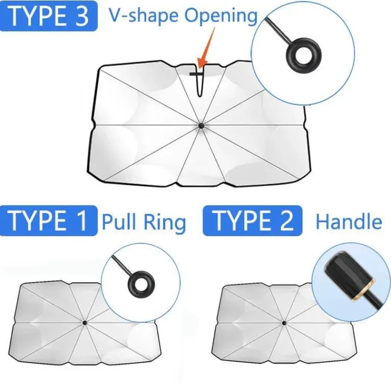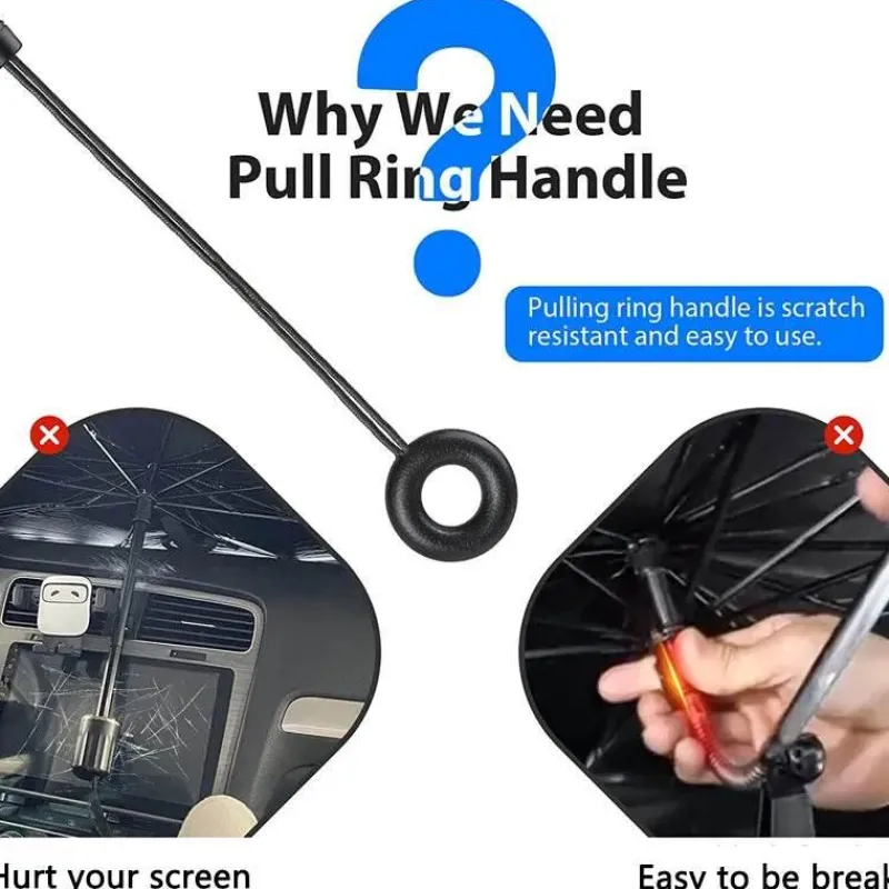 Der Regenschirm ist benutzerfreundlich gestaltet, lässt sich mühelos entfalten und bei Nichtgebrauch bequem verstauen. Er ist ideal für Fahrer, die den Innenraum ihres Autos pflegen und an heißen Tagen für mehr Komfort sorgen möchten. Dank seines kompakten Designs nimmt er wenig Platz ein und ist sowohl effizient als auch praktisch.