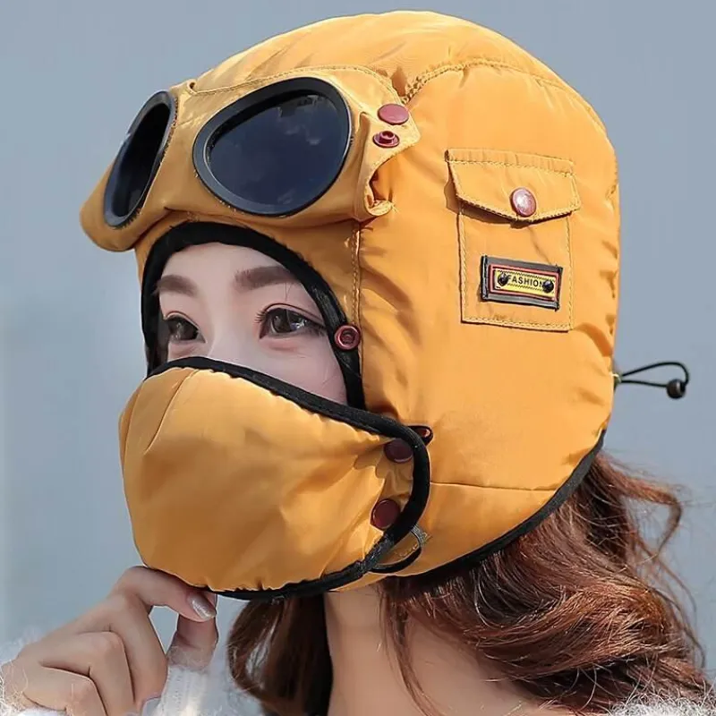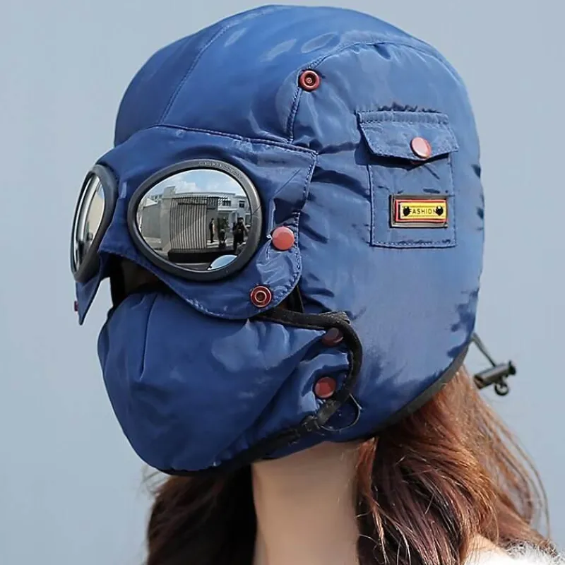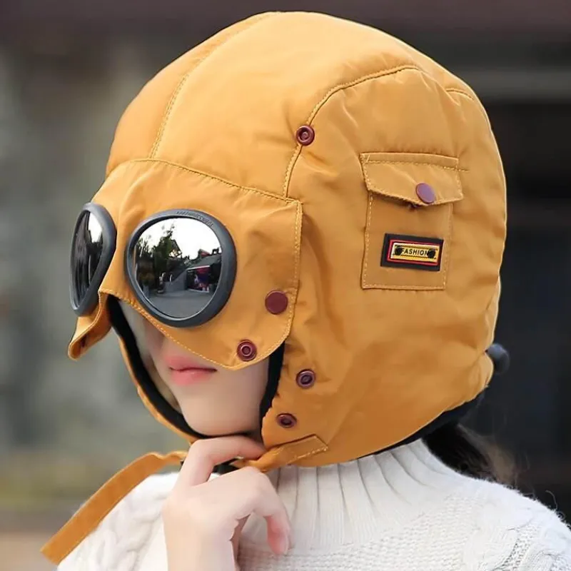 Wir präsentieren die vollgeschirmte Fliegerbrillenmütze, ein einzigartiges Accessoire, das die Funktionalität einer Schutzbrille mit dem klassischen Komfort einer Fliegermütze verbindet. Diese stylische Mütze im zeitlosen Fliegerdesign verfügt über eine breite Krempe und verstellbare Ohrenklappen, die je nach Komfort und Wetterbedingungen hoch- oder heruntergeklappt werden können.