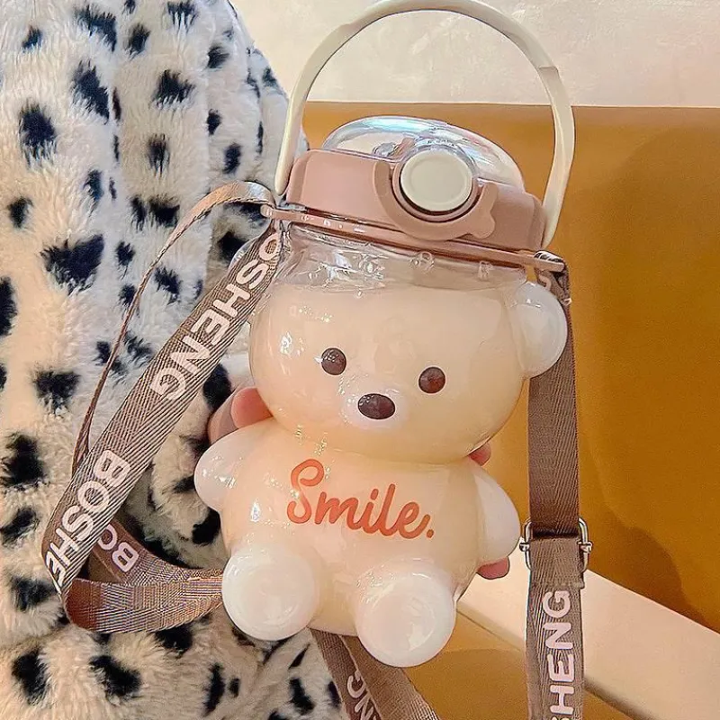 Im Paket enthalten ist eine süße Bären-Wasserflasche mit integriertem Strohhalm, die Sie auf all Ihren Reisen begleitet.