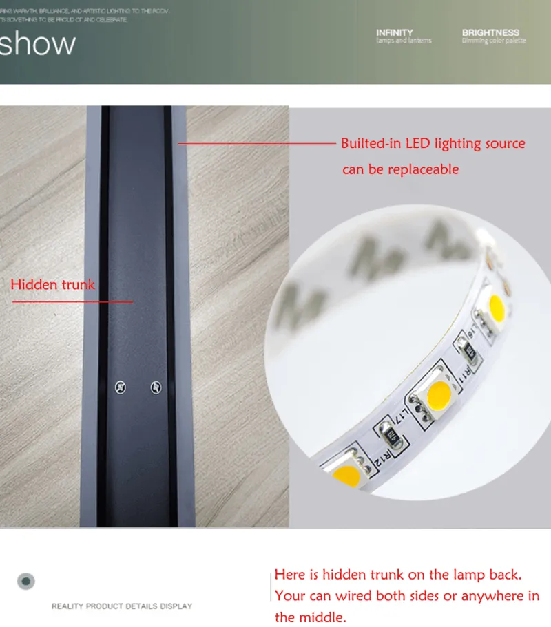 Verschönern Sie Ihren Wohnraum mit der Long Strip LED-Wandleuchte, einer eleganten und modernen Leuchte, die jedes Raumdekor perfekt ergänzt. Diese Leuchte erhellt nicht nur Ihre Umgebung, sondern verleiht ihr auch einen Hauch von Raffinesse und Eleganz. Ihr schlankes, längliches Design erzeugt ein sanftes, weitläufiges Licht, das der Atmosphäre Wärme und Tiefe verleiht. Damit ist sie die ideale Wahl für alle, die minimalistische Ästhetik in modernen Innenräumen schätzen.