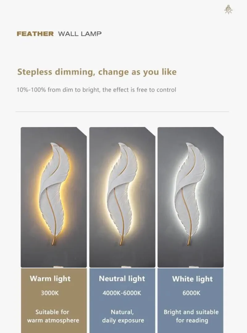 Package Includes: 1 x Nordic Elegant Feather LED Wall Lamp. This lamp not only elevates your decor but also provides functional lighting to meet your daily needs.