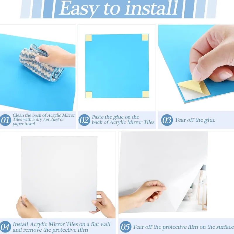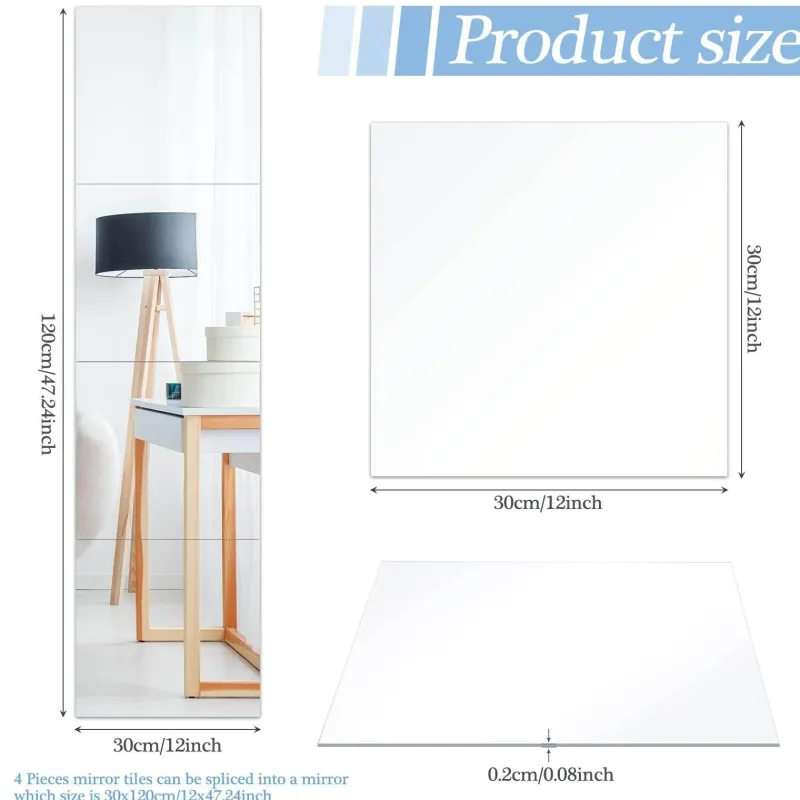 – 4 Stück 30 x 30 cm große, selbstklebende 3D-DIY-Spiegel-Wandaufkleber.