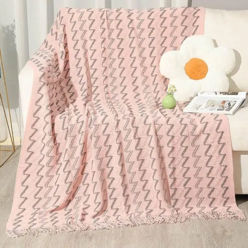 Diese vielseitige Decke für Frühling und Herbst vereint Strapazierfähigkeit und Komfort und wird so zu einem beliebten Begleiter in Ihrem Zuhause. Mit einer Farbechtheit von 4 sind ihre leuchtenden Farbtöne langlebig, während das geometrische Muster jedem Ambiente einen modernen Touch verleiht.