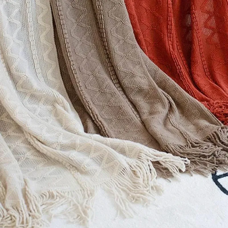 Wir präsentieren die Nordic Geometric Knit Blanket, eine weiche und kuschelige Decke, die Ihren Komfort in jeder Umgebung steigert. Hergestellt aus 100 % Acryl, bietet diese Decke außergewöhnlich viel Wärme und Haltbarkeit und eignet sich perfekt für Betten, Sofas oder sogar für ein Nickerchen im Büro.
