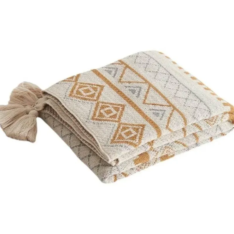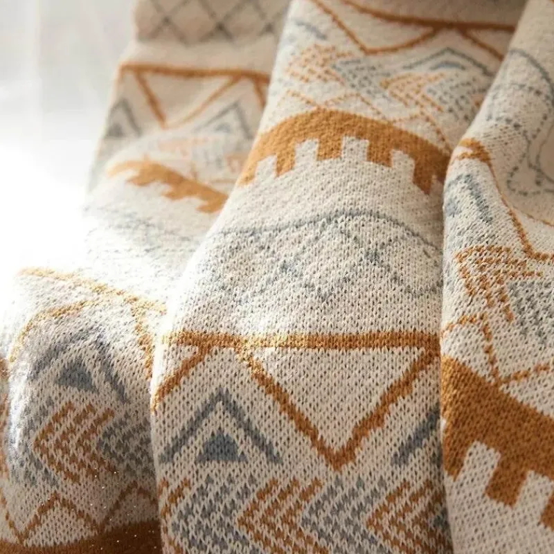 Spüren Sie die einladende Weichheit und Wärme dieser hochwertigen Garndecke. Sie wurde sorgfältig in einer klassischen rechteckigen Form entworfen und ist ideal für Erwachsene. Das elegante geometrische Muster verleiht ihr einen raffinierten Touch und macht sie zu einem vielseitigen Accessoire für jede Jahreszeit, von der Frische des Frühlings bis zur Frische des Herbsts.