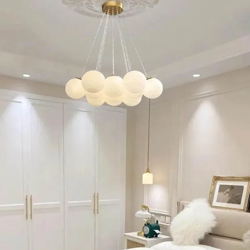 Erhellen Sie Ihren Raum mit diesem wunderschön gestalteten Kronleuchter im französischen Stil. Seine leuchtenden Glaskugeln vereinen mühelos klassische Eleganz mit modernem Charme. Die filigrane Struktur des Kronleuchters besticht durch mehrere leuchtende Kugeln, die ein sanftes, einladendes Licht ausstrahlen und so jedem Raum eine warme und elegante Atmosphäre verleihen.