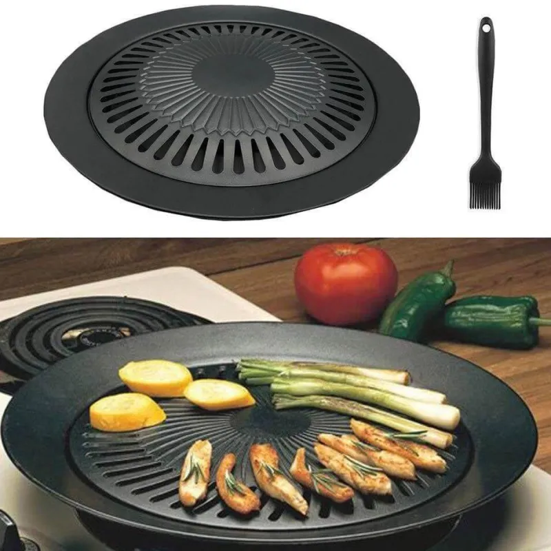 Erleben Sie Grillvergnügen bei jedem Wetter mit unserem rauchfreien, antihaftbeschichteten Gasgrill. Er wurde fachmännisch gefertigt, um Ihnen den vollen Grillgeschmack direkt in die Küche zu bringen. Dieser 33 cm große Grill ist für den Einsatz auf Gasherden konzipiert und verfügt über eine Silikon-Grillbürste, die Ihre kulinarischen Abenteuer noch bereichert.