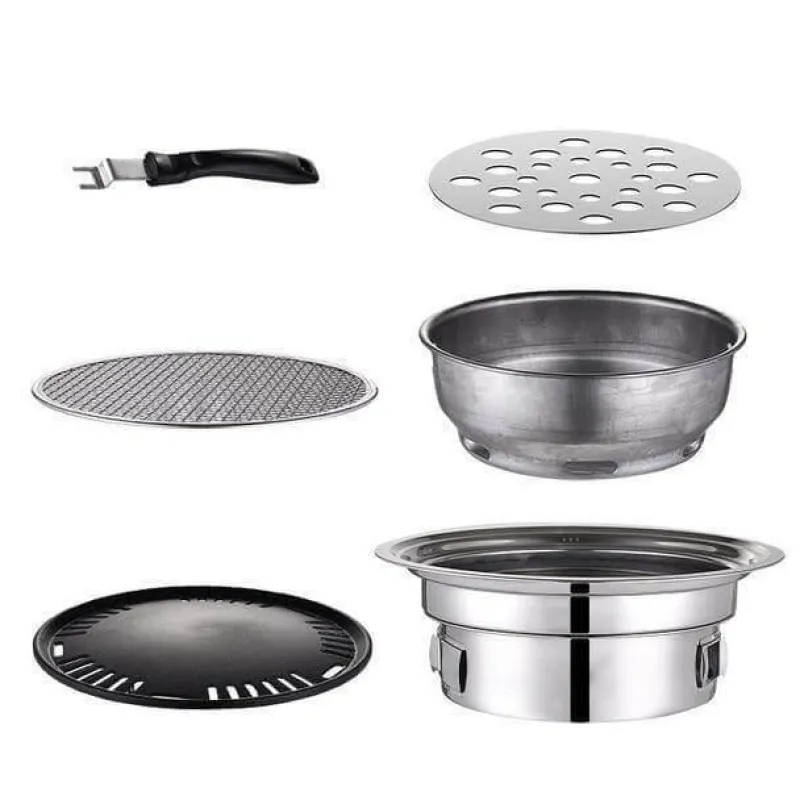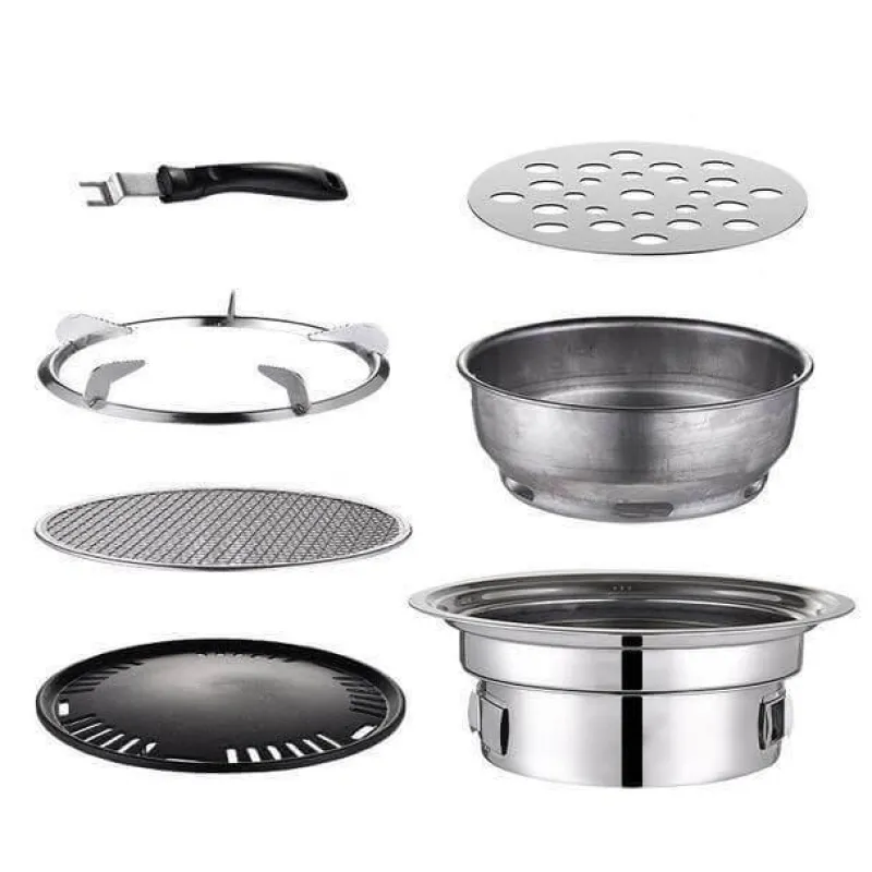 Entdecken Sie die Freude am Kochen im Freien mit diesem tragbaren Holzkohlegrill aus robustem Edelstahl im modernen koreanischen Design. Er ist der ideale Begleiter für Campingausflüge, Picknicks und Treffen im Freien und bietet eine zuverlässige Lösung für Ihre Grillbedürfnisse.