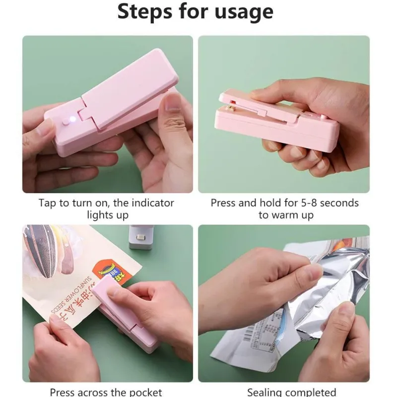 Erleben Sie die Zweckmäßigkeit und Effizienz dieses praktischen Versiegelungsgeräts, das sich ideal zum Bewahren der Frische und Ordnung bei Ihnen zu Hause oder unterwegs eignet.
