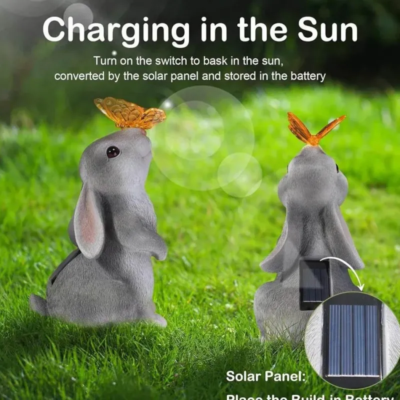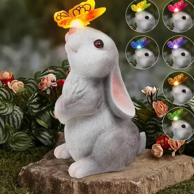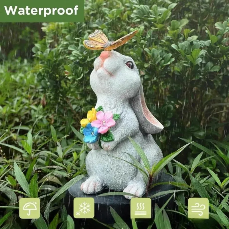 Verwandeln Sie Ihren Außenbereich mit dieser bezaubernden Gartenleuchte in ein zauberhaftes Märchen. Mit einem wunderschön gestalteten Häschen, umgeben von leuchtenden Schmetterlingen und blühenden Blumen, erhellt dieses entzückende Dekorationsstück Ihren Garten oder Ihre Terrasse und verleiht ihm einen Hauch von verspieltem Charme, der Freude und Fantasie anregt.