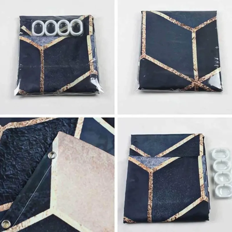 Verwandeln Sie Ihr Badezimmer mit diesem eleganten Duschvorhang, der einen Hauch römisch inspirierten Dekors in Ihr Zuhause bringt. Das Kunstwerk zeigt eine fesselnde Darstellung rauschender Wellen, kunstvoll in ruhigen Blau- und Weißtönen gehalten. Dieses Design fängt die dynamische Energie des Ozeans ein und schafft eine beruhigende Atmosphäre, die das Ambiente Ihres Badezimmers unterstreicht.