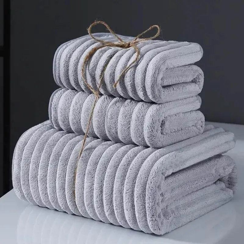 This three-piece set includes a bath towel, hand towel, and face towel, meticulously designed to wrap you in warmth and comfort after every shower or wash. The towels boast a thick surface that effectively absorbs moisture while retaining their soft and fluffy texture, ensuring they remain gentle against your skin.