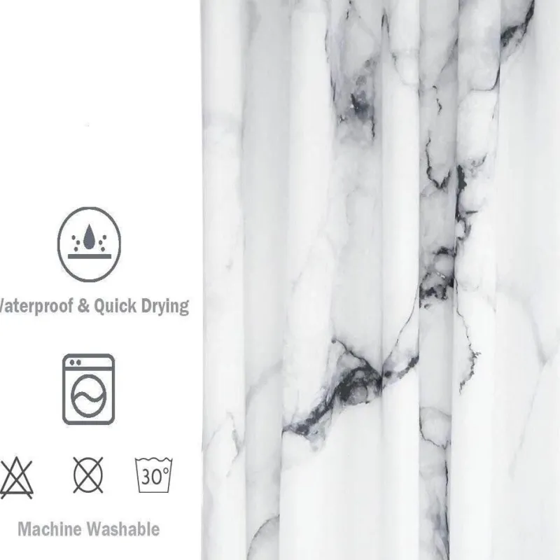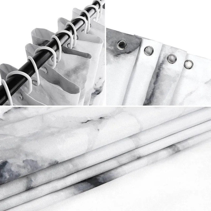 Verschönern Sie Ihr Badezimmer mit diesem eleganten Duschvorhang mit schwarz-weißem Marmormuster – eine stilvolle Ergänzung, die Ihrem Raum modernen Charme verleiht. Der Vorhang aus weicher, gebürsteter Mikrofaser vereint Optik mit praktischer Funktionalität. Das wasserabweisende Material hält Ihr Badezimmer frisch und trocken und ist maschinenwaschbar für mühelose Pflege. Das Set enthält 12 Haken für eine einfache Montage und einen sicheren Halt, der Ihre Einrichtung perfekt ergänzt.