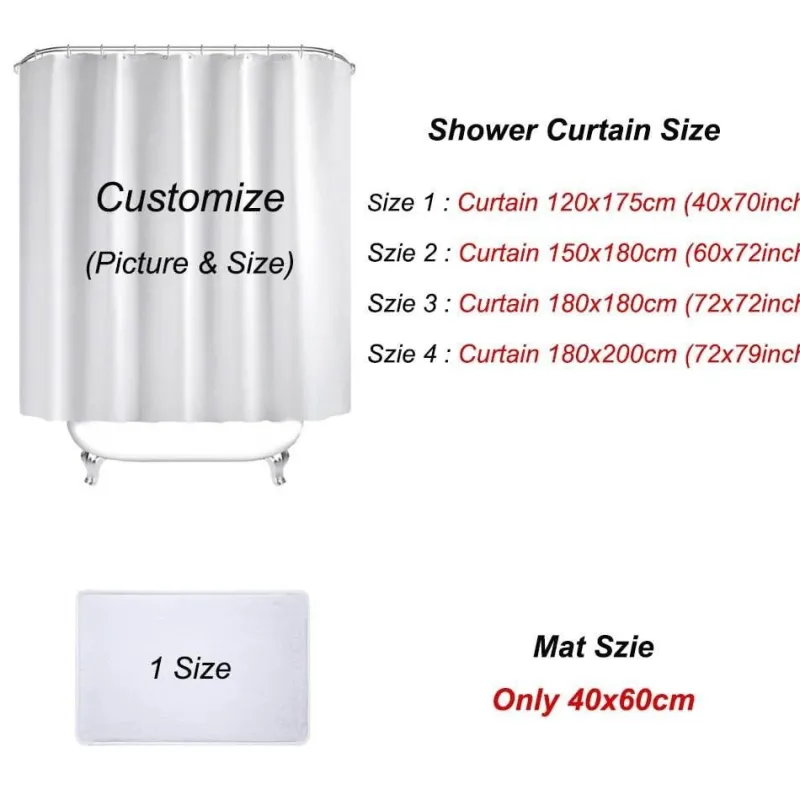 Jeder Duschvorhang wird mit 12 Haken zur einfachen Montage geliefert. Bitte beachten Sie, dass beim Kauf eines kompletten Duschvorhang-Sets die Badematte nur in der Größe 40×60 cm erhältlich ist.