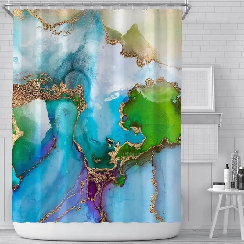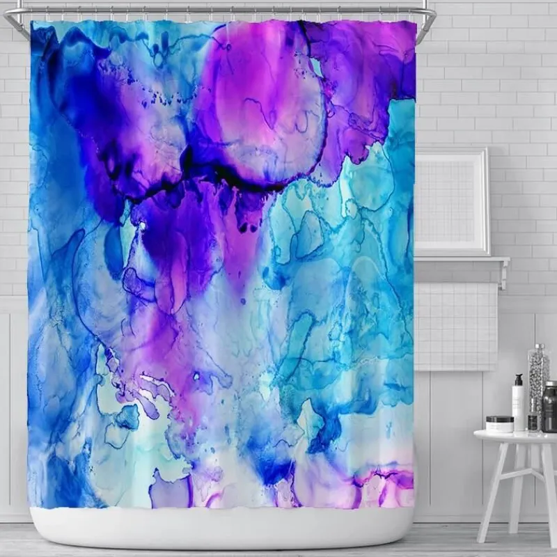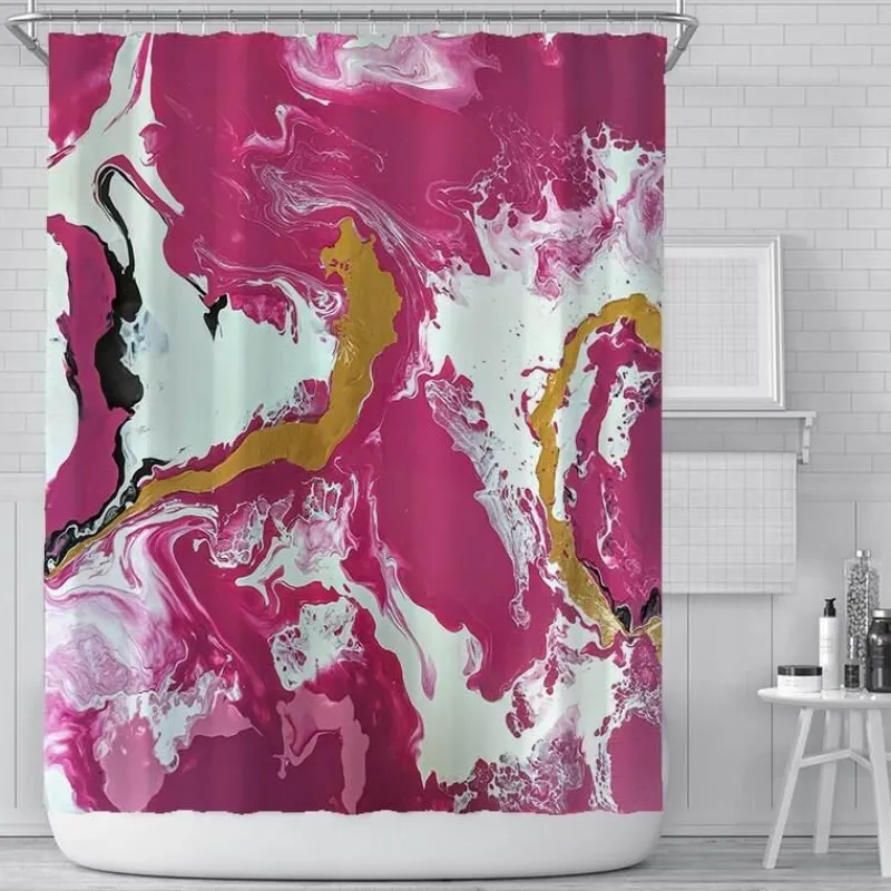 Verwandeln Sie Ihr Badezimmer mit unserem elegant gestalteten Duschvorhang, inspiriert von abstrakter Kunst, in einen ruhigen Rückzugsort. Dieses unverwechselbare Stück besticht durch eine wunderschöne Farbpalette aus Blau, Gold, Rosa und neun weiteren Farbtönen, die in einem sanften, malerischen Stil ineinander übergehen und jedem Raum eine lebendige Note verleihen.