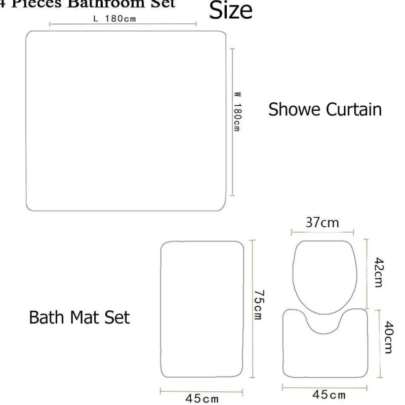 – **1 Badezimmerteppich:** 75 x 45 cm (30 x 18 Zoll)