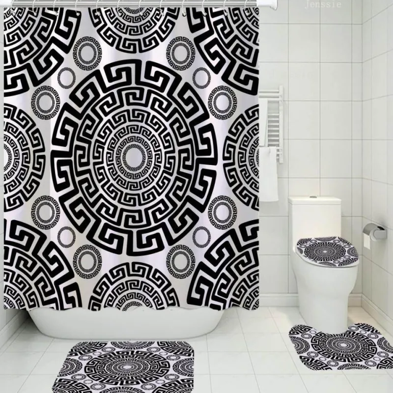 Verwandeln Sie Ihr Badezimmer mit dem luxuriösen Duschvorhang-Set von Versace in eine Oase der Eleganz. Dieses atemberaubende Set vereint moderne Eleganz mit praktischem Design und ist aus hochwertigem, wasserdichtem Polyestergewebe gefertigt, das Stil und Langlebigkeit garantiert. Das malerische Muster unterstreicht die Ästhetik Ihres Raumes und macht es zu einem Blickfang in Ihrer Inneneinrichtung.