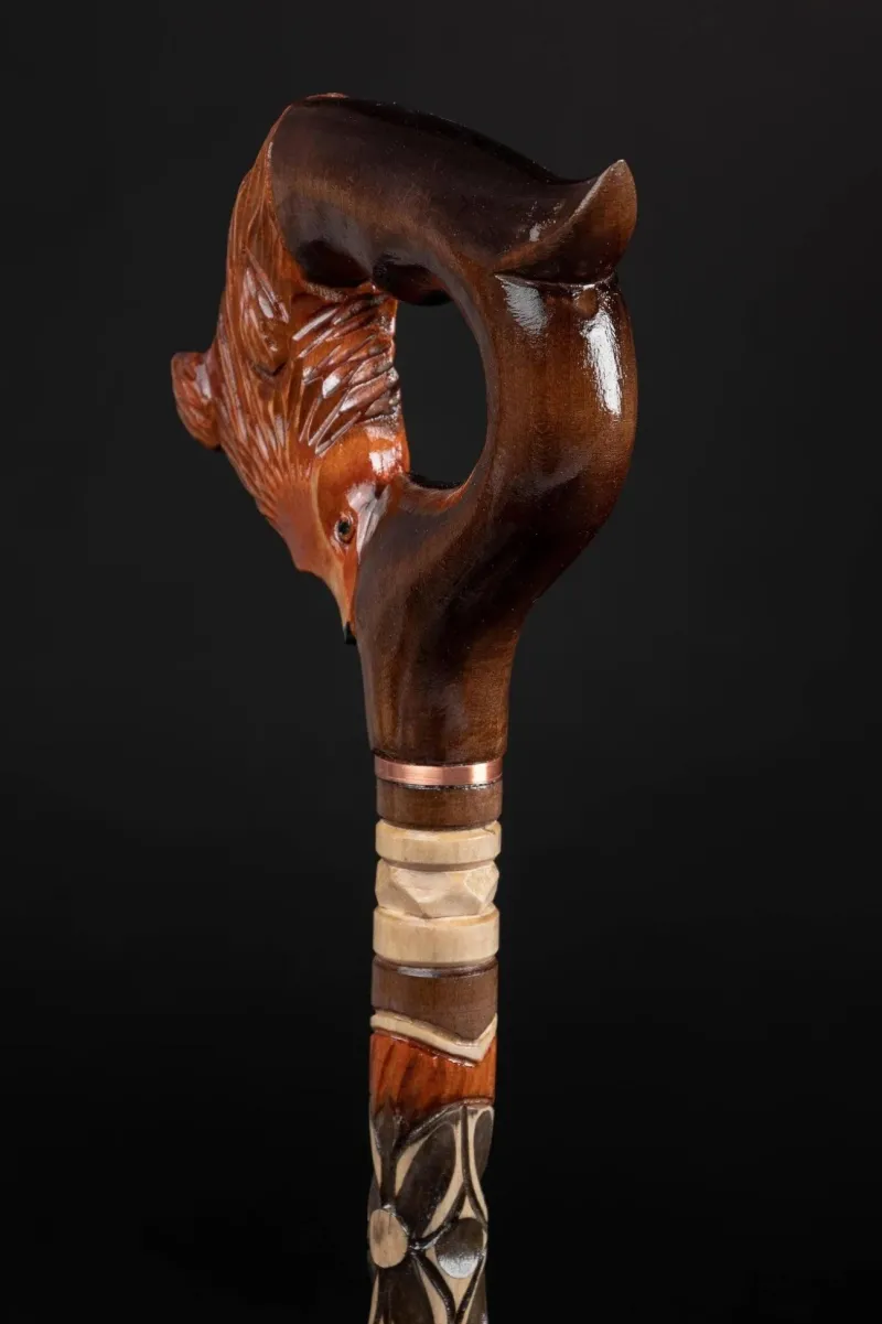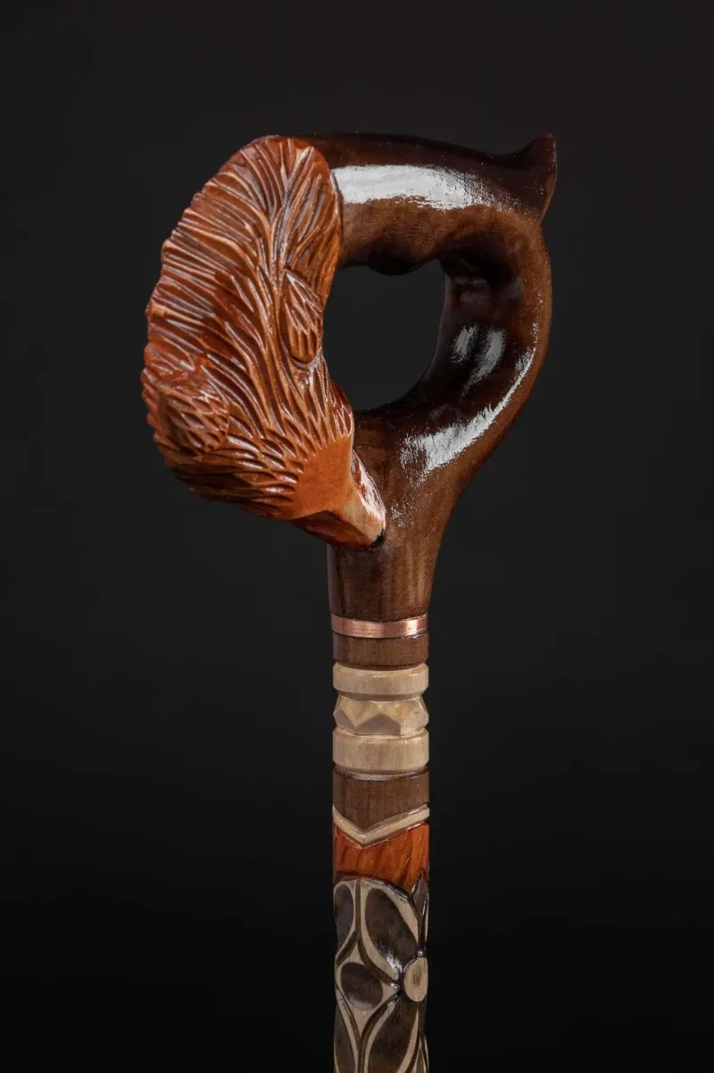 Geschnitzte Gehstöcke für Damen, . Möchten Sie Ihrem Stil einen Hauch von Einzigartigkeit verleihen? Dann sind Sie mit unserem geschnitzten Fuchs-Gehstock genau richtig. Das einzigartige Design des Stocks wird die Menschen, die an Ihnen vorbeigehen, nicht gleichgültig lassen. Dies ist kein Ruhestandsstock, sondern ein außergewöhnlicher Gehstock!