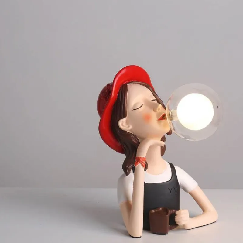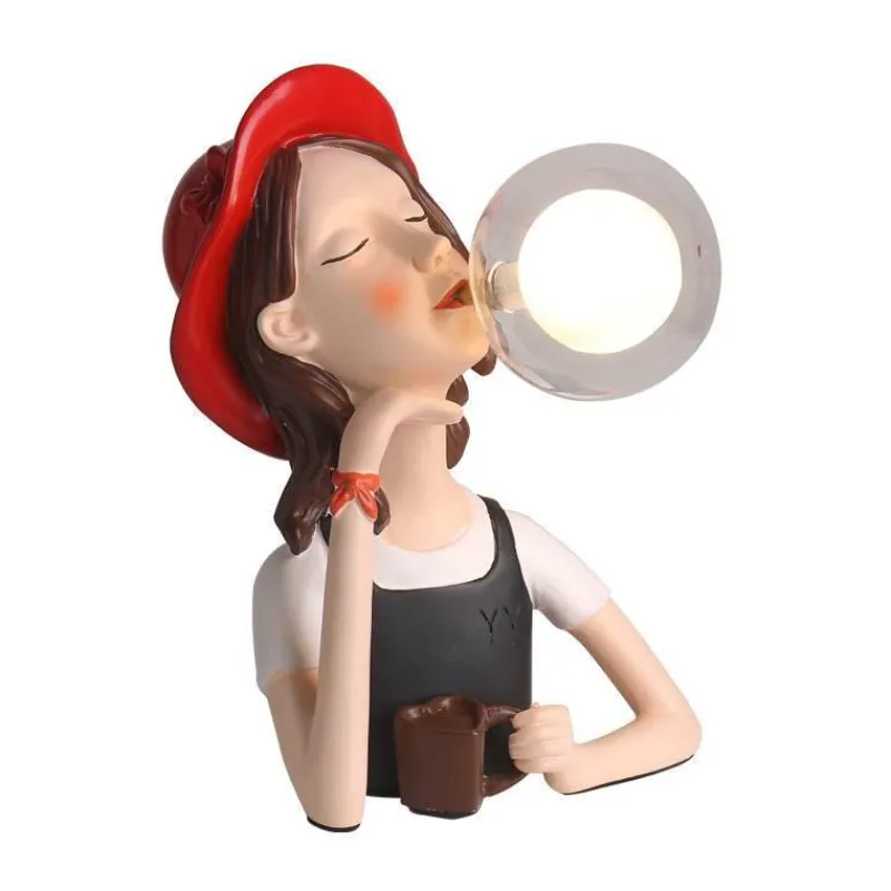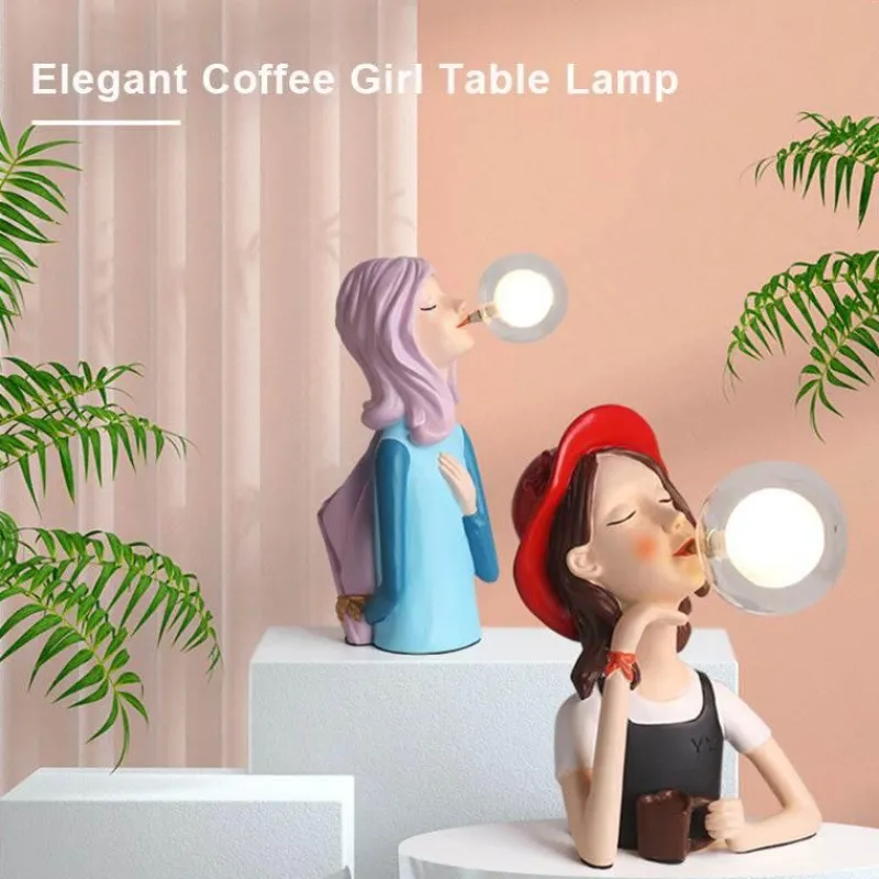 Erhellen Sie Ihren Raum mit unseren eleganten Couchtischlampen, die Ihre Wohnkultur stilvoll und charmant aufwerten. Diese fein gearbeiteten Lampen eignen sich perfekt für verschiedene Umgebungen und sind in reizvollen Designs erhältlich, darunter die Tischlampe „Bouquet Girl“ (15 cm x 35 cm), die Tischlampe „Red Hat Coffee Girl“ (16 cm x 24 cm) und die Tischlampe „Gray Hat Coffee Girl“ (16 cm x 24 cm). Jede Lampe ist mit exquisiten Details verziert und kombiniert gekonnt Harz und Glas zu einem einzigartigen Blickfang für Ihr Schlafzimmer, Wohnzimmer oder Nachttisch.