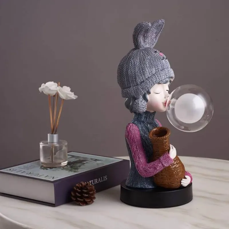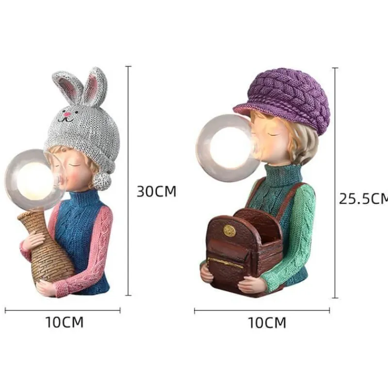 Diese Lampe mit ihrer robusten Metallfassung und hochwertigem Harz ist in den Größen 10 x 30 cm und 10 x 25,5 cm erhältlich und somit eine vielseitige Option für jeden Tisch. Wählen Sie aus einer Vielzahl von Farben, darunter Mädchen mit weißen Hasenohren, Mädchen mit grauen Hasenohren, Mädchen mit Rotkäppchen oder Mädchen mit lila Hut, damit Sie die perfekte Ergänzung für Ihren Einrichtungsstil finden.