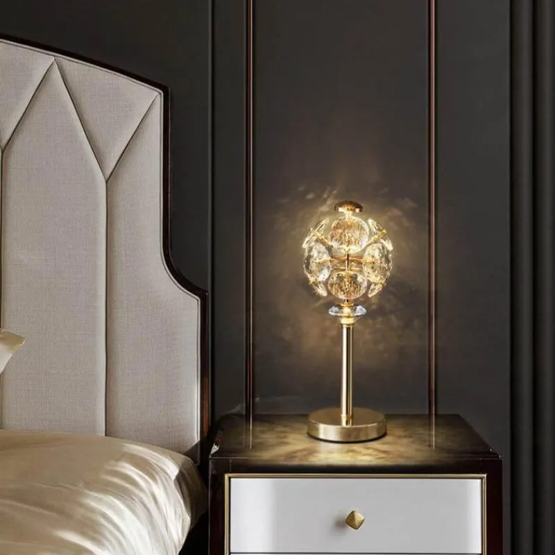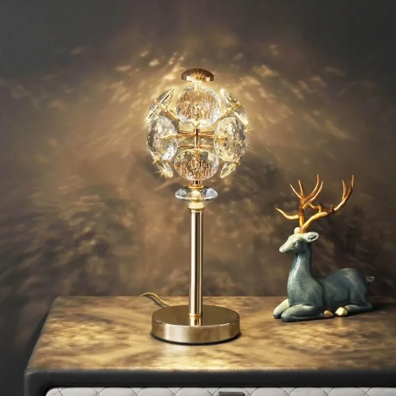 Verschönern Sie Ihren Wohnraum mit dieser exquisiten Kristall-Tischlampe. Ihr durchdachtes Design passt perfekt zu modernen und postmodernen Interieurs. Sie eignet sich ideal als stilvoller Akzent am Bett oder als Blickfang in Ihrem Schlafzimmer. Sie verfügt über einen eleganten Metallsockel und einen sorgfältig gefertigten Kristalllampenschirm. Der Lampenschirm streut das Licht elegant und schafft eine warme und einladende Atmosphäre.