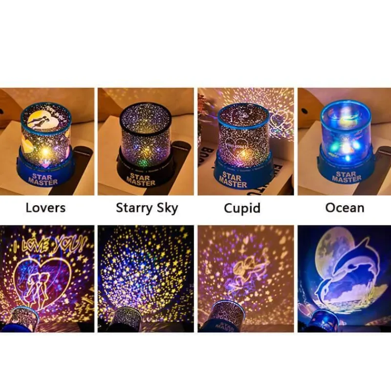 Verstärken Sie den Charme Ihrer Lampe, indem Sie sie mit LED-Lichterketten oder einem Retro-Kerzenhalter aus Eisen kombinieren – für eine elegante Dekoration. Erleben Sie die beruhigende Wirkung dieser Projektorlampe, die nicht nur Ihren Raum erhellt, sondern auch ein faszinierendes Sternenhimmel-Erlebnis projiziert.