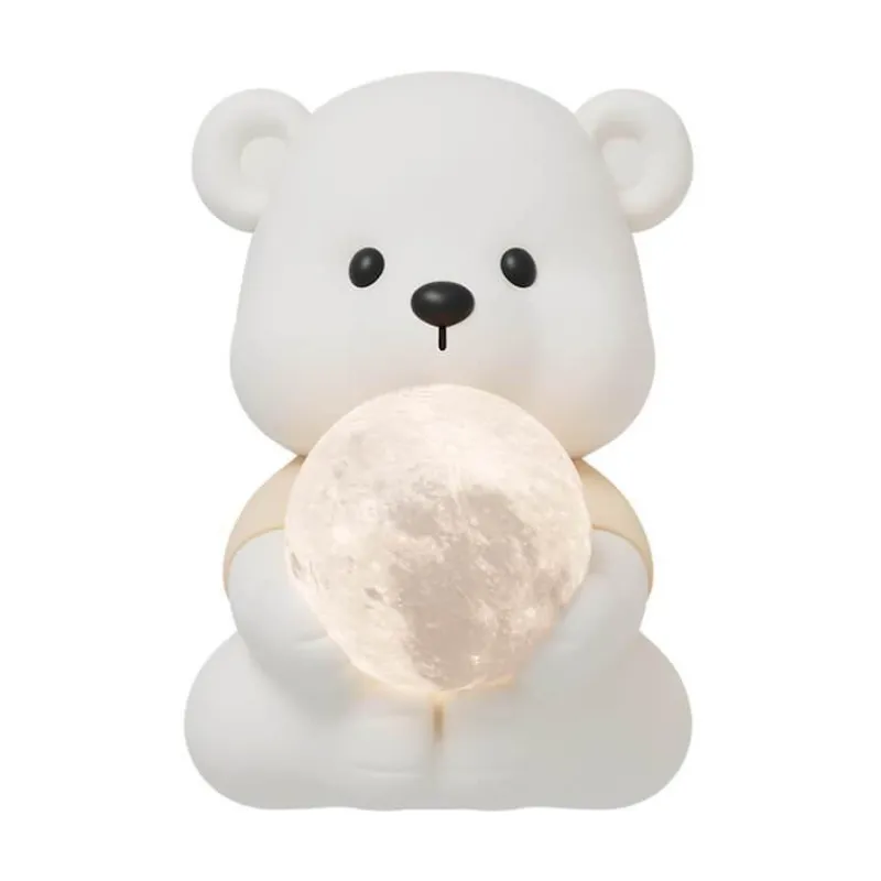 Verwandeln Sie das Kinderzimmer Ihres Kindes mit dem Goodbye Bear Nachtlicht, einer charmanten Nachttischlampe, die jedem Schlafzimmer eine verträumte Note verleiht. Dieses dekorative Accessoire dient sowohl als beruhigendes Nachtlicht als auch als schöne Ergänzung Ihrer Wohnkultur. Die Lampe aus robustem Harz besticht durch ihr einladendes weißes Finish, das mit vielen Designthemen harmoniert.