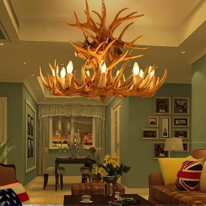Verwandeln Sie Ihren Wohnraum mit der Hirschhorn-Pendelleuchte, einem wunderschönen Beispiel amerikanischen Loft-Stils, das jedem Raum optische Reize und Struktur verleiht. Diese einzigartige Leuchte besticht durch drei elegant gestaltete Hirschhörner, die sicher auf einem robusten Eisenrahmen montiert sind und so für Langlebigkeit und Ästhetik sorgen.