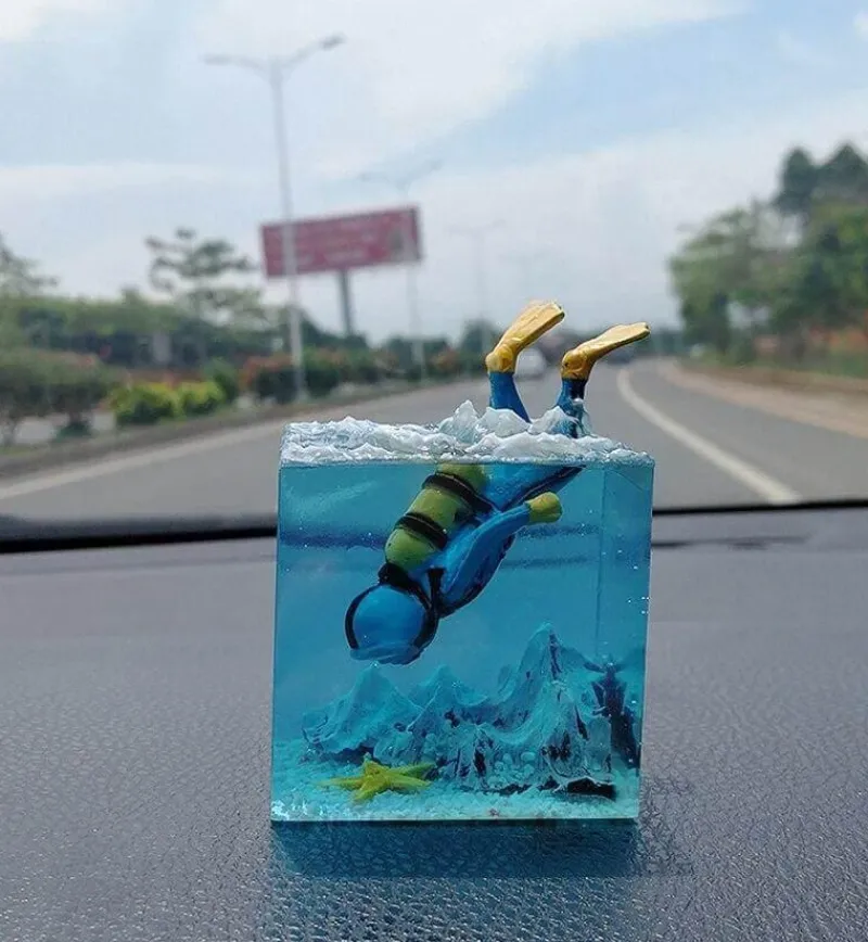Transform your living space with this handcrafted resin lamp featuring an intricately detailed sculpture of a scuba diver swimming beneath the waves. This ocean-themed lighting fixture serves as an enchanting accent piece, perfect for enhancing the atmosphere of any nautical-inspired room or office. The gentle warmth of its premium indoor lighting fosters a serene ambiance that beautifully complements your existing decor. For added reassurance, this lamp is UL-approved, allowing you to enjoy its unique design while prioritizing your safety.