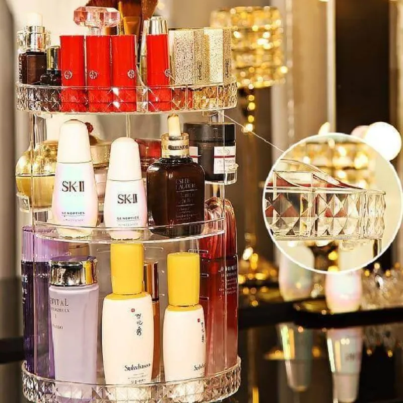 Dieser durchdachte, drehbare Organizer sorgt für einen aufgeräumten Arbeitsplatz und sorgt dafür, dass Reinigungsmittel, Make-up und Accessoires stets griffbereit sind. Die robusten, dicken Ablagen aus hochwertigem Acryl bieten sicheren Halt für eine Vielzahl von Kosmetikprodukten. Der innovative Drehboden ermöglicht mühelosen Zugriff, sodass Sie schnell finden, was Sie brauchen.