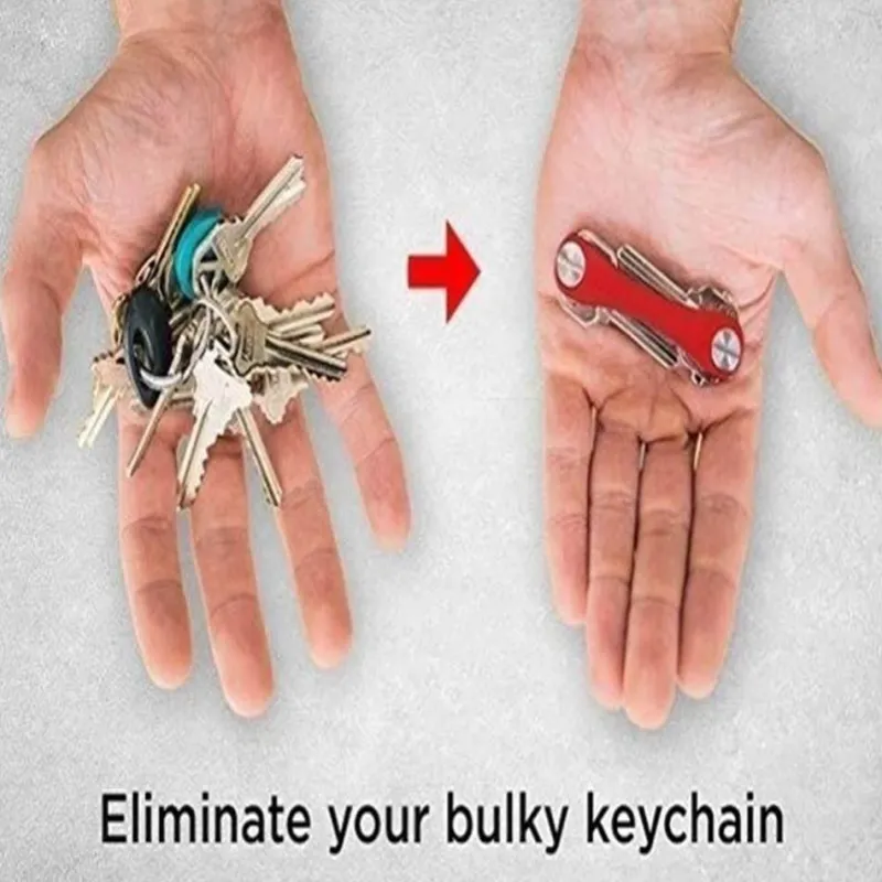 Dieser Schlüsselanhänger-Organizer aus robustem Edelstahl und Aluminium ist für den täglichen Gebrauch konzipiert. Erhältlich in eleganten Farben wie Schwarz, Rot und Blau vereint er Funktionalität mit moderner Ästhetik.