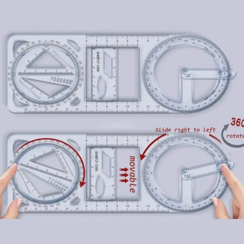 Dieses vielseitige geometrische Zeichenwerkzeug ist ideal für Schüler, Künstler und Profis. Es fungiert als Lineal und Winkelmesser und verfügt über eine Bleistiftzirkelfunktion und bietet umfassenden Nutzen für eine Vielzahl von Aufgaben.