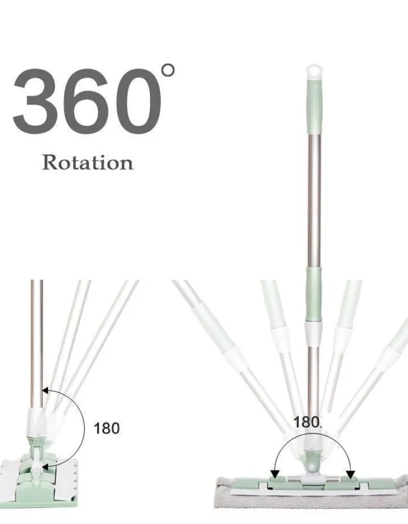 Der 360-Grad-Teleskop-Flachmopp ist ein unverzichtbares Werkzeug für makellos saubere Böden. Dank des verstellbaren Teleskopstiels erreichen Sie mühelos Ecken und enge Stellen. Der geräumige 36-cm-Flachmoppkopf ist für die effiziente Reinigung größerer Flächen konzipiert. Der drehbare Kopf erleichtert das Manövrieren um Möbel herum und in Ritzen, sodass kein Schmutz zurückbleibt.