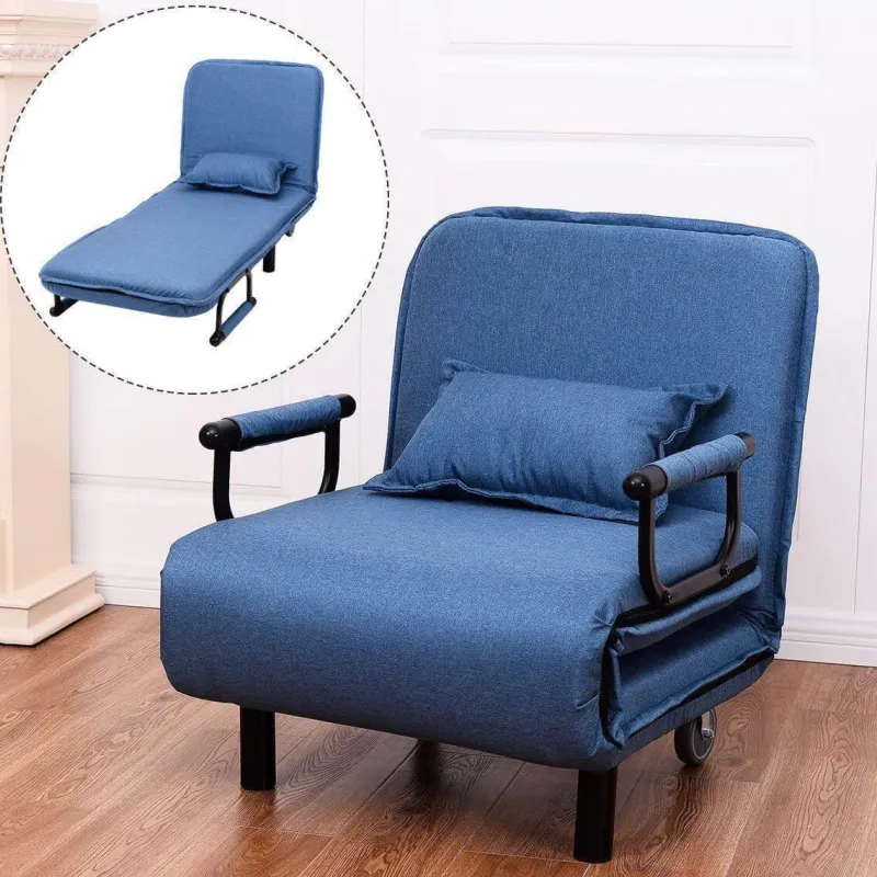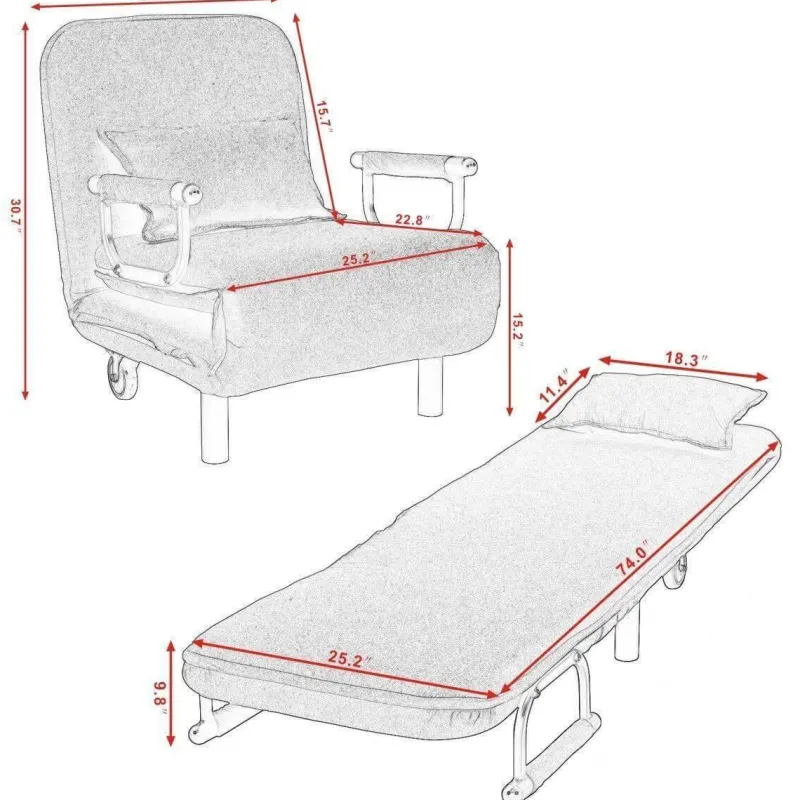 Dieser Stuhl aus hochwertigem Polyester, robustem Stahl und weichem Schaumstoff ist langlebig und bietet gleichzeitig höchsten Komfort. Er verwandelt sich mühelos vom Sessel in ein Bett oder eine Chaiselongue und erfüllt so Ihre Entspannungsbedürfnisse. Zwei eingebaute Rollen sorgen für einfache Mobilität, sodass Sie ihn mühelos nach Belieben neu positionieren können.