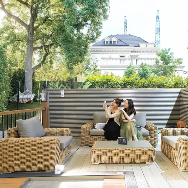Erleben Sie außergewöhnlichen Komfort und Stil mit der Alvise Outdoor-Möbelkollektion, die zum Entspannen und Entspannen im Freien konzipiert wurde. Gefertigt aus strapazierfähigem Rattan, besticht diese Kollektion durch moderne Ästhetik und langlebige Qualität. Jedes Möbelstück ist mit wasserabweisenden Outdoor-Kissen ausgestattet, die für ein gemütliches Sitzerlebnis sorgen und Ihnen wetterunabhängiges Entspannen ermöglichen. Ob Sie Freunde zu einem gemütlichen Beisammensein einladen oder einen ruhigen Moment in der Sonne genießen – diese Kollektion schafft die perfekte Atmosphäre für das Leben im Freien. Ihr durchdachtes Design vereint Entspannung und Funktionalität und macht sie zur idealen Ergänzung für Ihre Terrasse oder Ihren Garten.