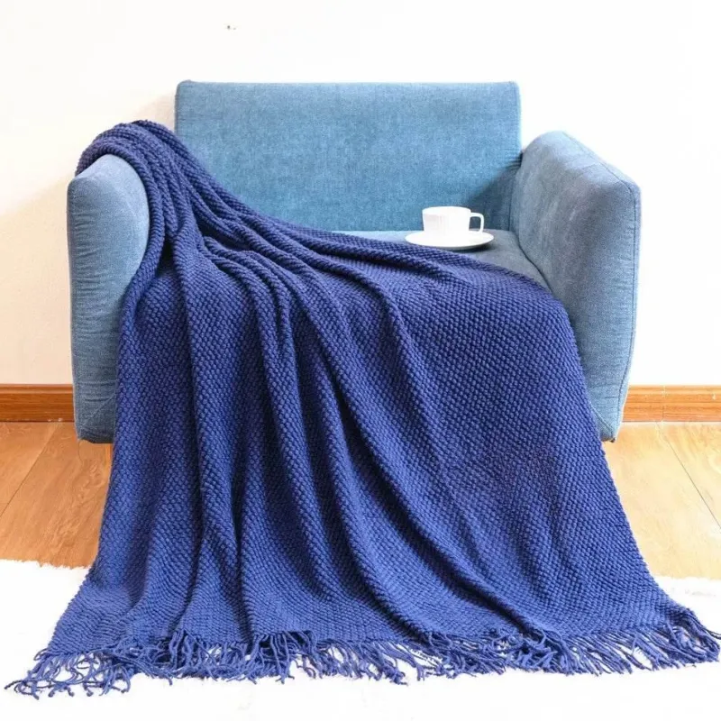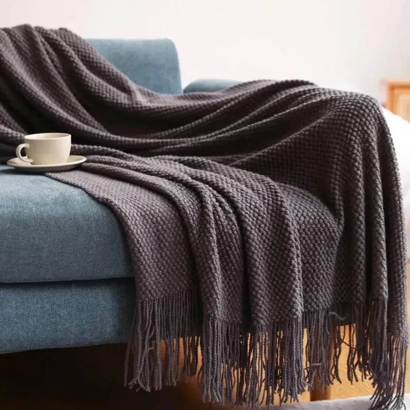 Erleben Sie die Wärme und Gemütlichkeit dieser hochwertigen Garndecke, die sich perfekt für das ganze Jahr eignet. Dank ihres geringen Gewichts und ihrer Tragbarkeit ist sie der ideale Begleiter für gemütliche Abende auf der Couch an kühlen Frühlingstagen oder zum Entspannen in der frischen Herbstluft.