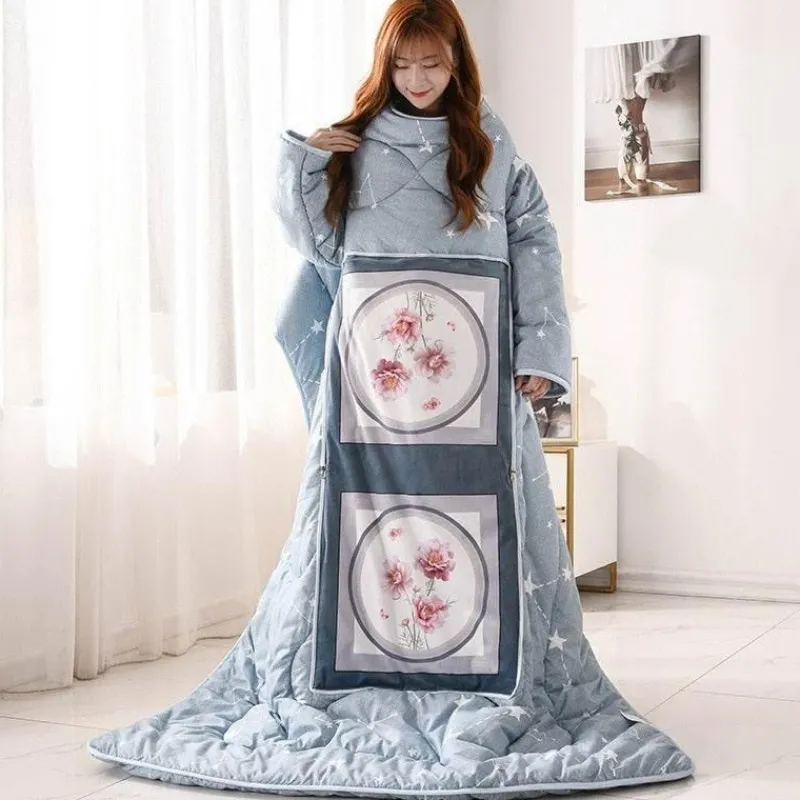 Erleben Sie kuscheligen Komfort mit der Winter Lazy Wearable Blanket – ideal für alle, die gemütliche Tage zu Hause genießen. Die Decke hat zwei Ärmel, die sich eng an Ihre Arme schmiegen und sich perfekt für verschiedene Aktivitäten eignen, wie Fernsehen, Lesen Ihres Lieblingsbuchs oder Surfen auf Ihrem Mobilgerät – und hält Sie dabei warm.