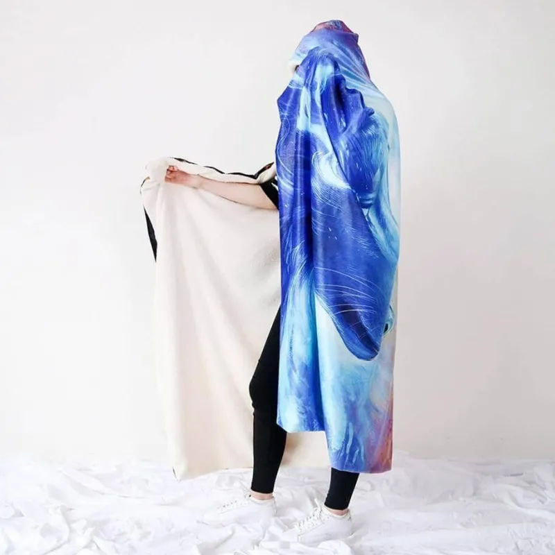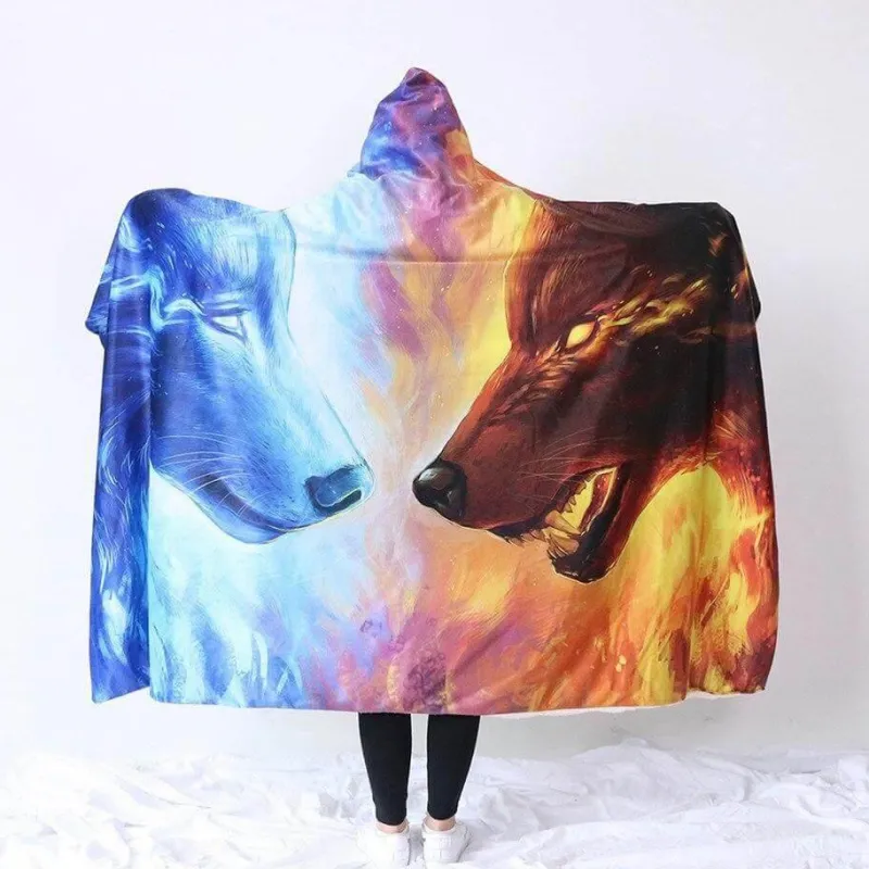 Erleben Sie Komfort und Wärme zu Hause mit unserer tragbaren 3D-Kapuzendecke „Eis und Feuer“. Diese Decke bietet Bewegungsfreiheit und schleift beim Tragen nicht auf dem Boden. Ideal zum Entspannen auf dem Sofa oder zum Herumlaufen im Haus. Dank ihrer großzügigen Größe ist sie auch für größere Kinder, Erwachsene, Eltern und Großeltern geeignet und hält Sie kuschelig warm, um die Kälte fernzuhalten.