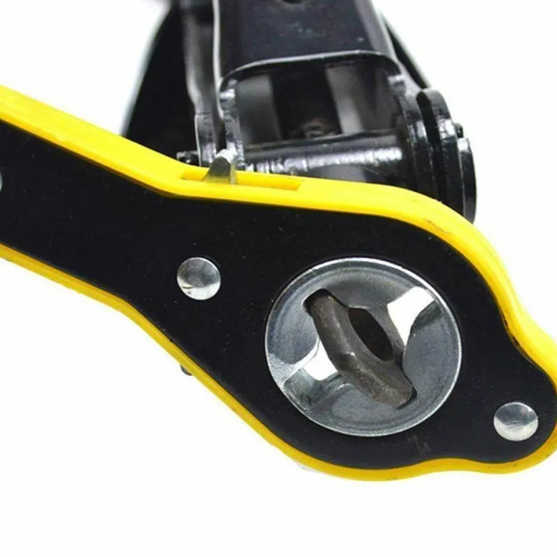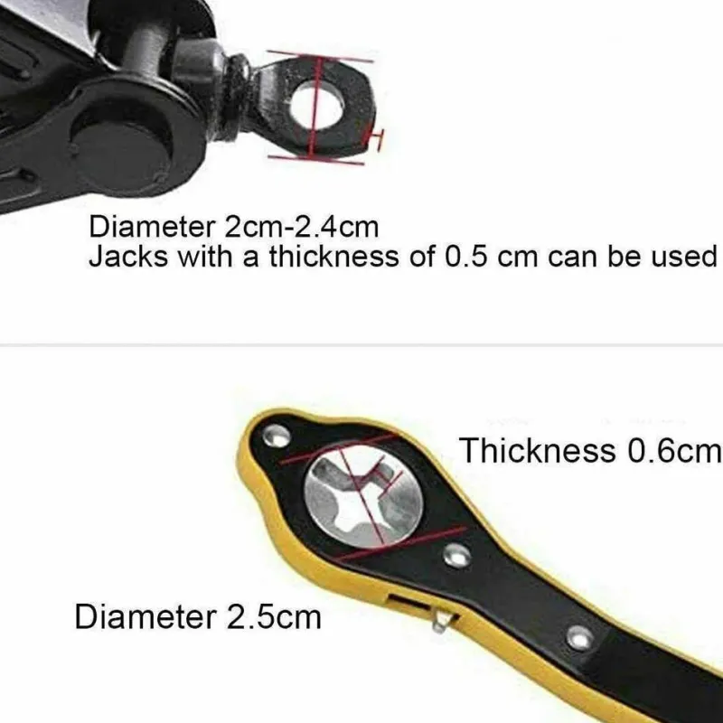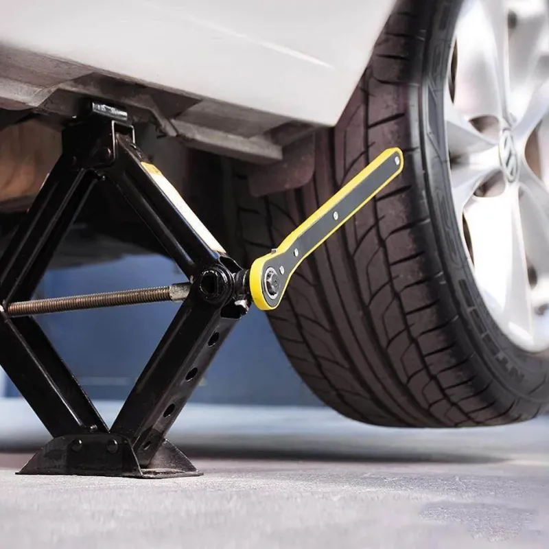 Dieser Ratschenschlüssel ist speziell für einen Scherenwagenheber konzipiert und kann Fahrzeuge mit einem Gewicht von bis zu 2 Tonnen tragen. Ob erfahrener Mechaniker oder Gelegenheitsnutzer – Sie werden das intuitive Tastendesign zu schätzen wissen, das einen einfachen Wechsel zwischen Drehmomentrichtungen ermöglicht. Drücken Sie einfach die Taste, um mit minimalem Kraftaufwand zwischen Rechts- und Linkslauf zu wechseln.