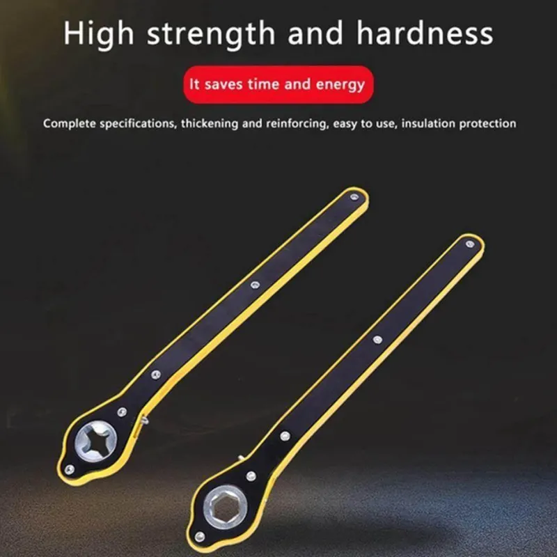 Der automatische Ratschenschlüssel ist ein unverzichtbares Werkzeug für den schnellen Reifenwechsel und verschiedene mechanische Reparaturen. Dank seines ergonomischen Designs liegt dieser Schlüssel bequem in der Hand und verringert die Abrutschgefahr. Hergestellt aus langlebigem, hochwertigem Metall ist er für den häufigen Gebrauch konzipiert.