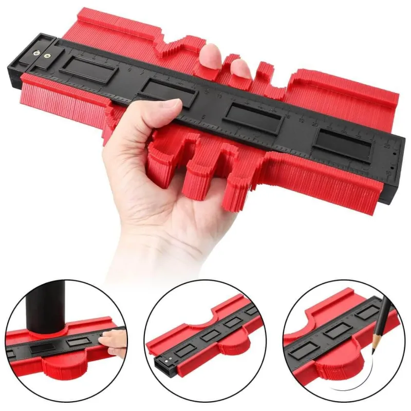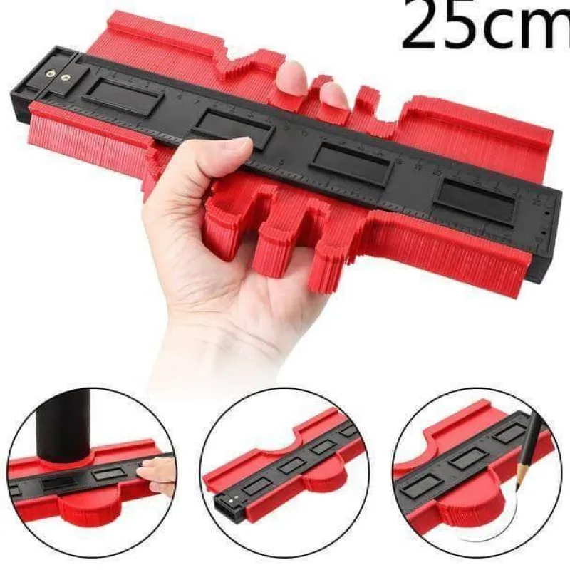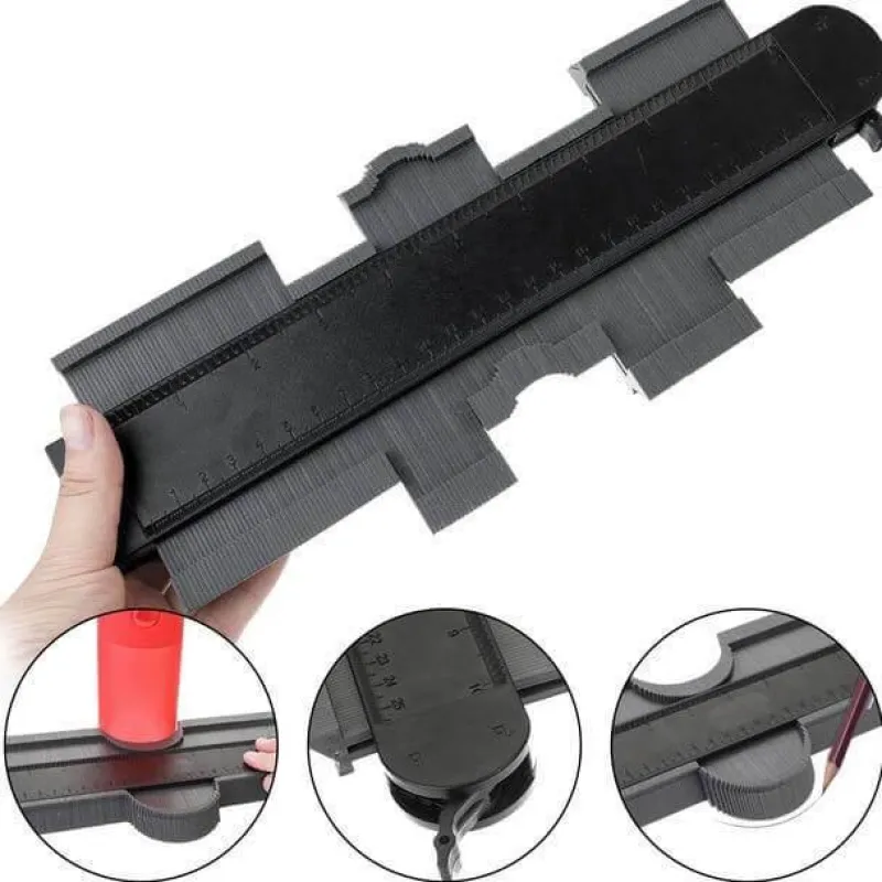 Die mitgelieferte Konturlehre für unregelmäßige Profile (120 mm/250 mm, 5 Zoll/10 Zoll) wurde speziell für die Nachverfolgung von gewundenen Rohren, runden Rahmen, Kanälen und verschiedenen Objekten entwickelt. Durch einfaches Andrücken der Lehre an Ihr Ziel können Sie die Kontur problemlos anpassen und die gewünschte Form reproduzieren.