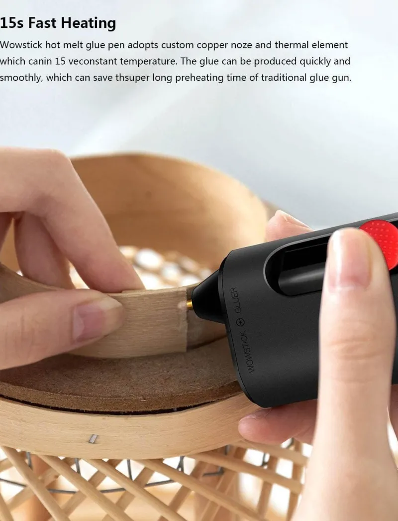 * Schnelle Aufheizzeit von nur 15 Sekunden, die einen schnellen Zugriff auf den Klebstoff mit einer automatischen Konstanttemperaturfunktion ermöglicht.