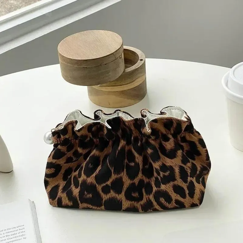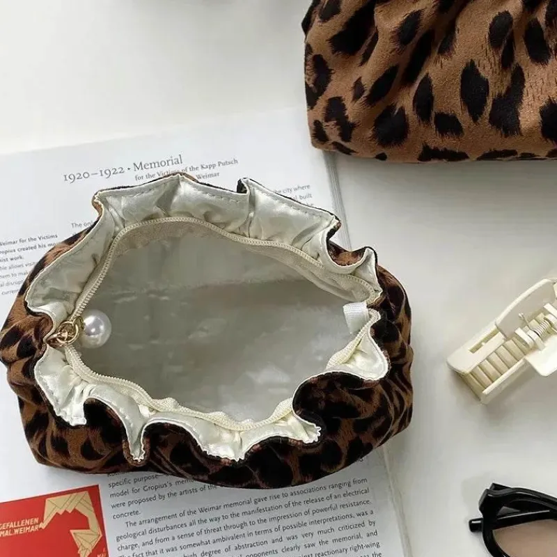 Lassen Sie sich vom Charme der Clarissa Kosmetiktasche begeistern – ein kompaktes und zugleich elegantes Accessoire für mühelose Reiseorganisation. Gefertigt aus luxuriös weichem, samtigem Stoff mit auffälligem Leopardenmuster ist diese Tasche ebenso funktional wie stilvoll. Die gewellte Öffnung gibt den Blick auf ein cremeweißes Satinfutter frei, das Ihren Alltagsutensilien einen edlen Touch verleiht. Mit einem perlenbesetzten Reißverschluss verbindet diese Kosmetiktasche Funktionalität mit edlem Design. Perfekt für die Organisation Ihrer Kosmetik unterwegs – die Clarissa Kosmetiktasche ist ein unverzichtbarer Reisebegleiter, der Ihren persönlichen Stil widerspiegelt.
