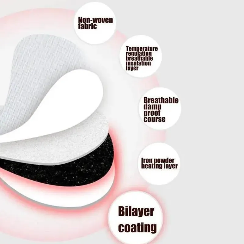 Bleiben Sie in den kalten Wintermonaten warm und komfortabel mit unseren selbsterwärmenden, nicht-elektrischen Fußwärmpads. Diese Fußwärmer aus atmungsaktivem Vliesstoff und Eisenpulver bieten ein weiches Tragegefühl und sorgen für zusätzlichen Komfort. Jedes Paar wärmt bis zu 12 Stunden lang gleichmäßig und sorgt so für wohlige Füße – ganz ohne Strom.