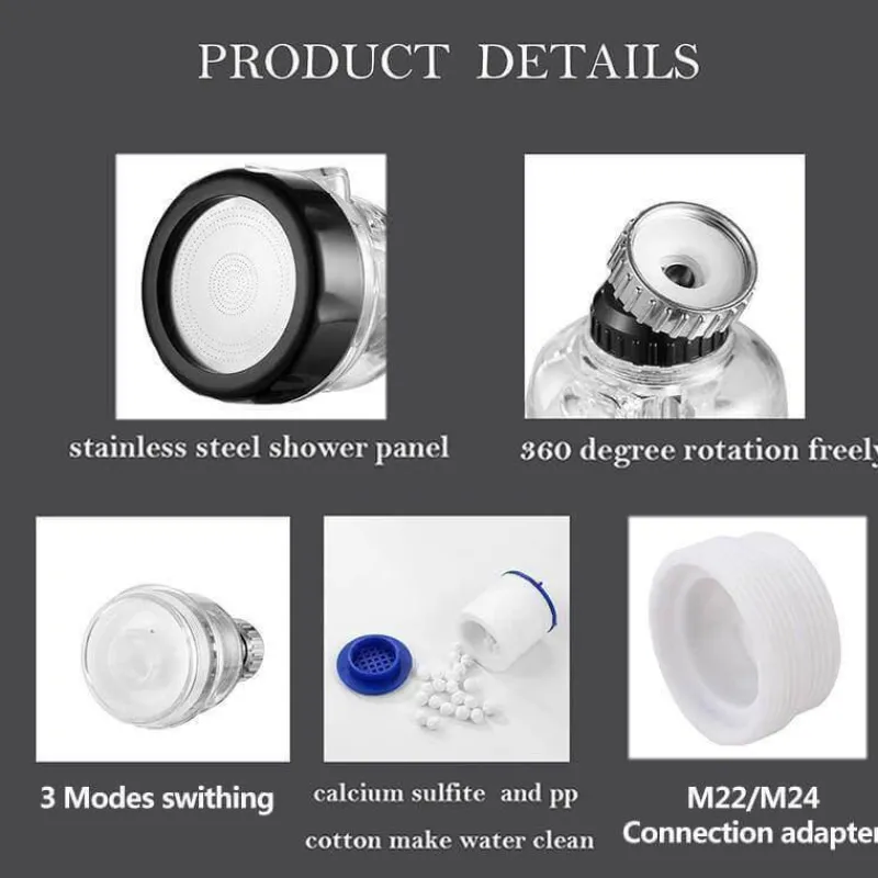 Mit drei einstellbaren Sprühmodi erhöht dieser Wasserhahnfilter den Wasserdruck für eine kraftvolle Spülung, reduziert Spritzer und spart gleichzeitig Wasser. Seine 360-Grad-Drehung ermöglicht eine gründliche Reinigung ohne tote Stellen und sorgt jedes Mal für eine vollständige Spülung.
