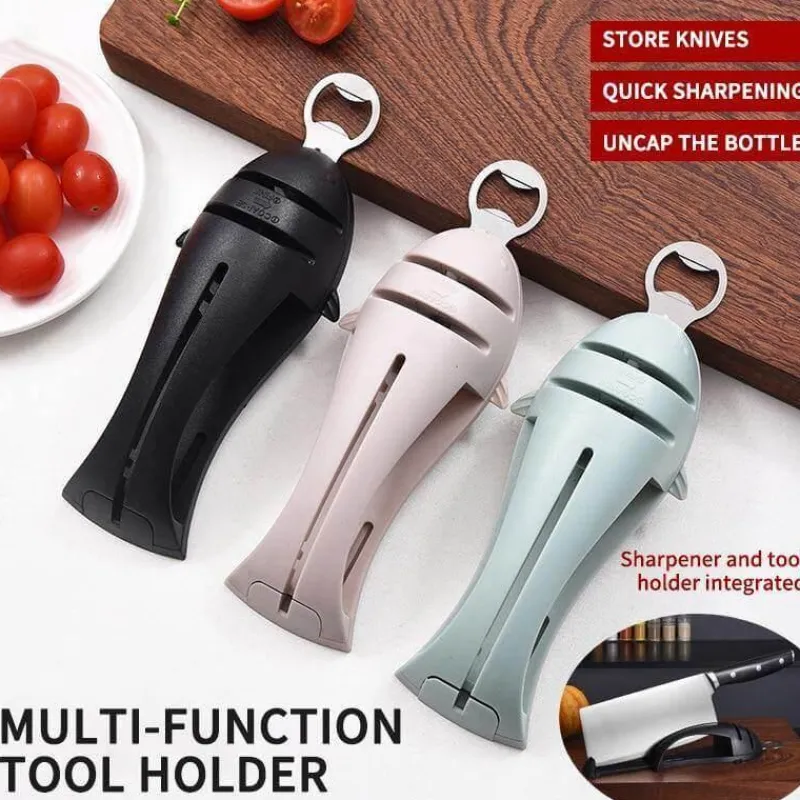 Der 3-in-1-Multifunktionsmesserschärfer ist ein unverzichtbares Werkzeug für alle, die ihre Küchenklingen mühelos pflegen möchten. Dieses innovative Produkt vereint Messerschärfer, Messerhalter und Korkenzieher in einem kompakten Design und ist somit eine praktische Ergänzung für Ihr Zuhause.