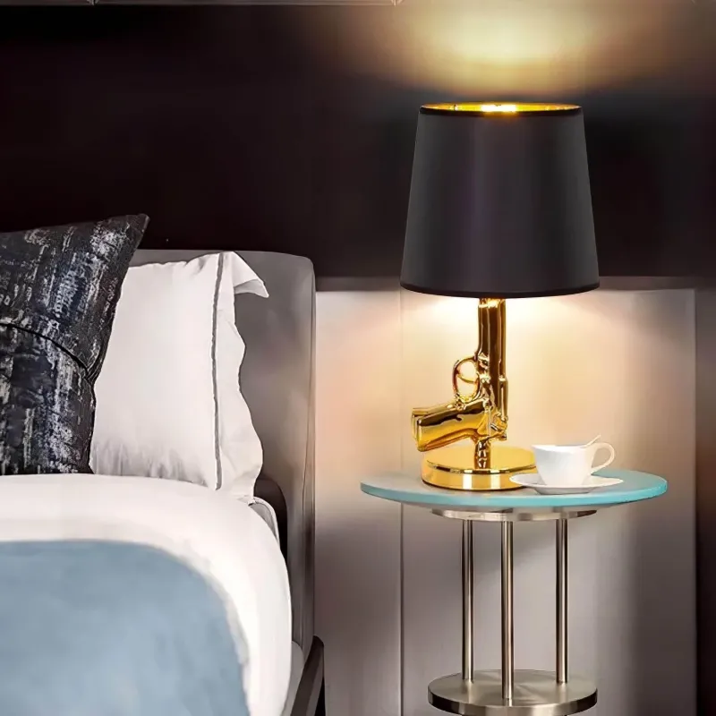 Die Lampe verbreitet ein warmes, einladendes Licht und schafft eine einladende Atmosphäre, die sowohl Ihr Zuhause als auch Ihr Büro bereichert. Ihr unverwechselbares Design spricht sowohl Liebhaber moderner Einrichtung als auch Liebhaber militärischer Geschichte an und verleiht Ihrem Raum einen Hauch von Eleganz. Erhellen Sie Ihre Umgebung mit der faszinierenden Essenz der einzigartigen Tischleuchte – einem Statement-Accessoire, das praktische Beleuchtung mit künstlerischem Flair harmonisch verbindet.